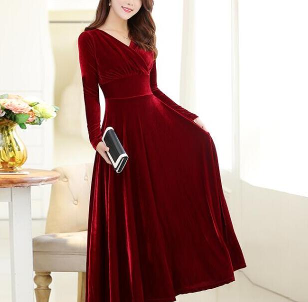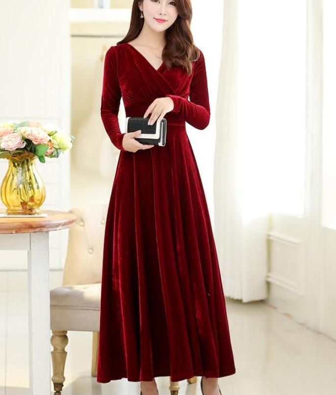 Wine Red A-line Long Sleeves Velvet Winter Prom Dresses