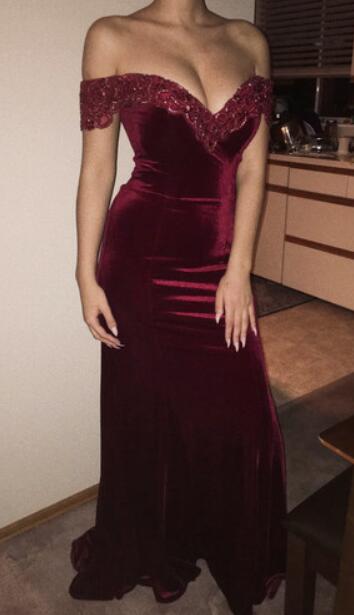Sexy Mermaid Velvet Off Shoulder Long Party Dress, Evening Gowns