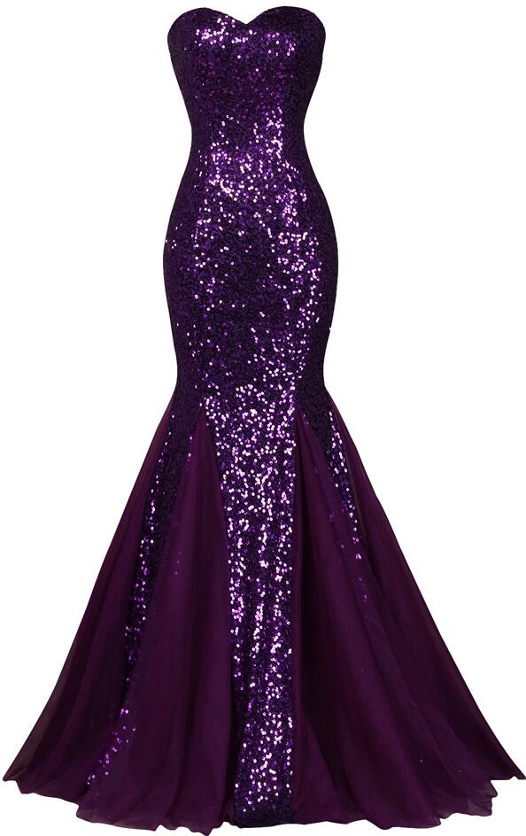 Elegant Sequin Long Sparkly Purple Evening Dress Formal Dresses