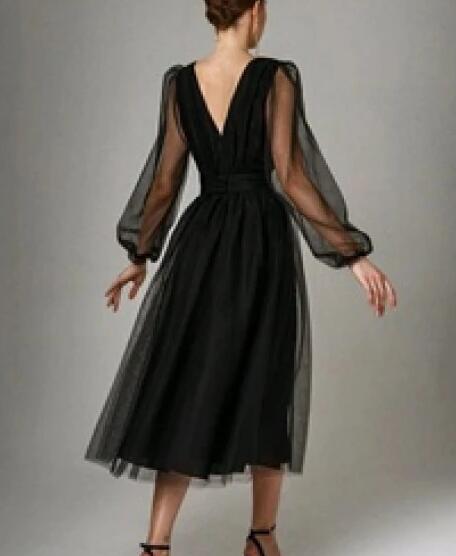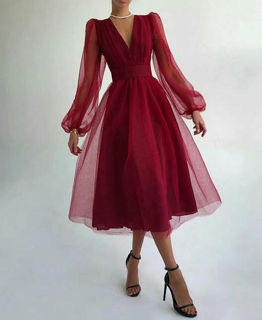 Charming Long Sleeve Burgundy Tea Length Prom Dress