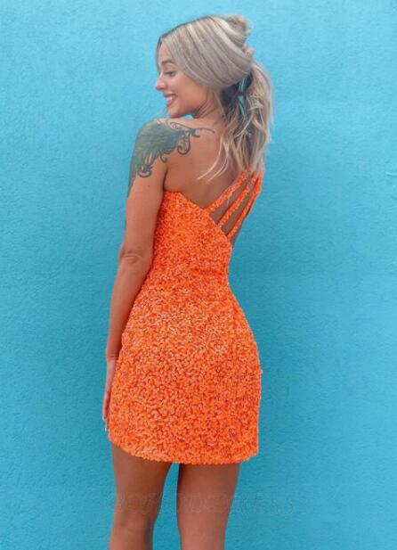Charming Open Back Short Sequin One Shoulder Homecoming Dress