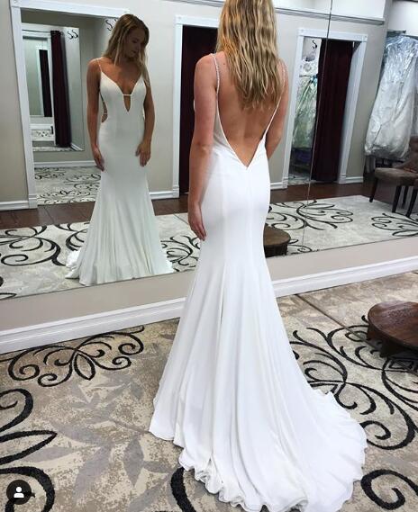 Mermaid V-Neck Backless Wedding Dresses,Bridal Gown,Custom Made Wedding Gown