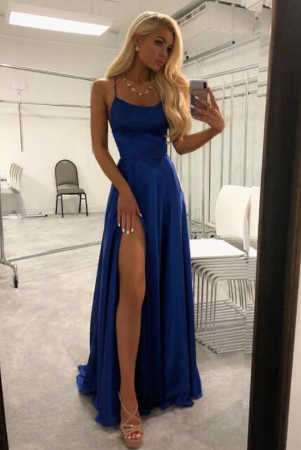 Simple Royal Blue Prom Dresses with Split , Evening Party Dresses