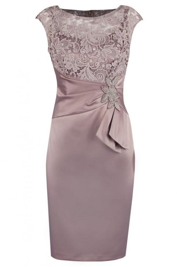 Sheath Short Satin Mother of The Bride Dress with Lace
