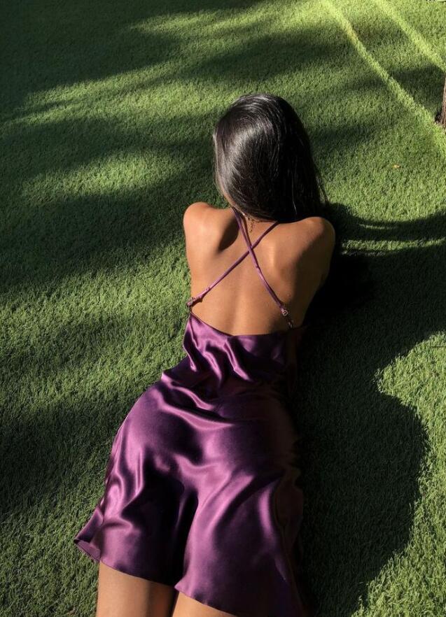 Spaghetti Straps Halter Purple Mini Prom Dress Evening Dress