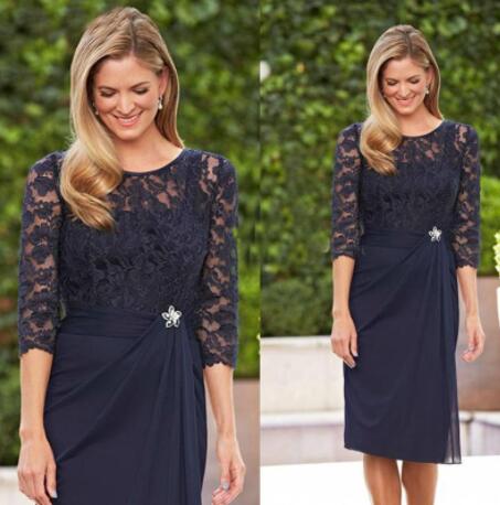 Charming Navy Blue Lace Chiffon Mother of the Bride Dresses With 3/4 Sleeve