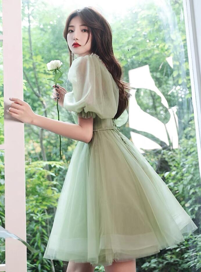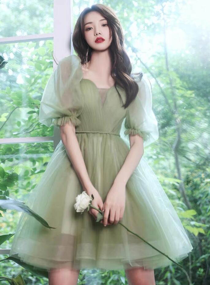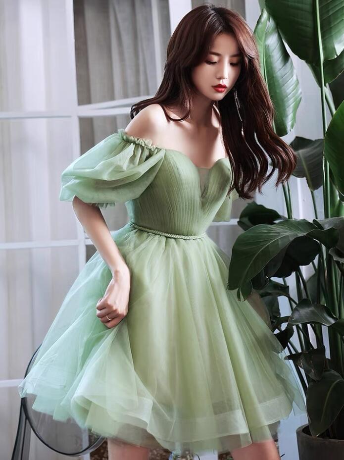 Cute Off shoulder Tulle Green Short Homecoming Dresses