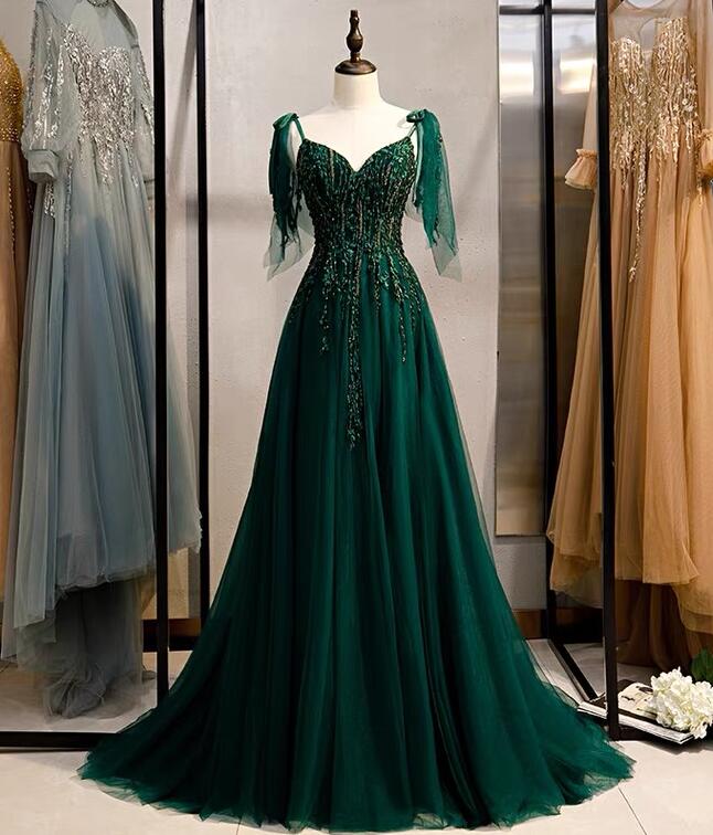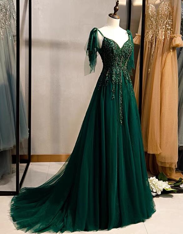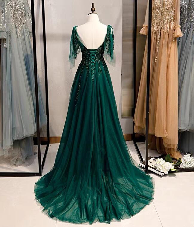 Mermaid Green new style V-neck tulle prom dresses