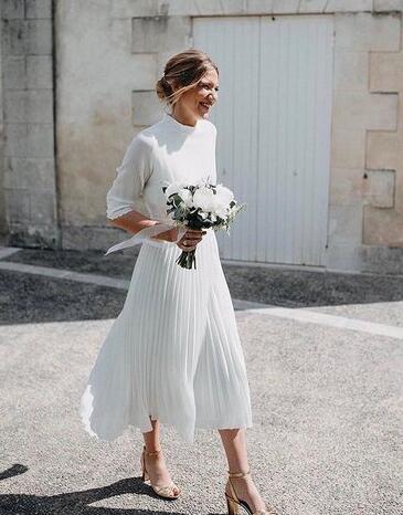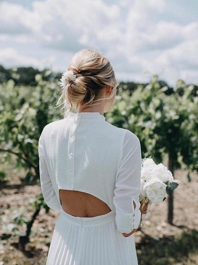 High Neck Tea Length Chiffon Open Back Beach Wedding Dress