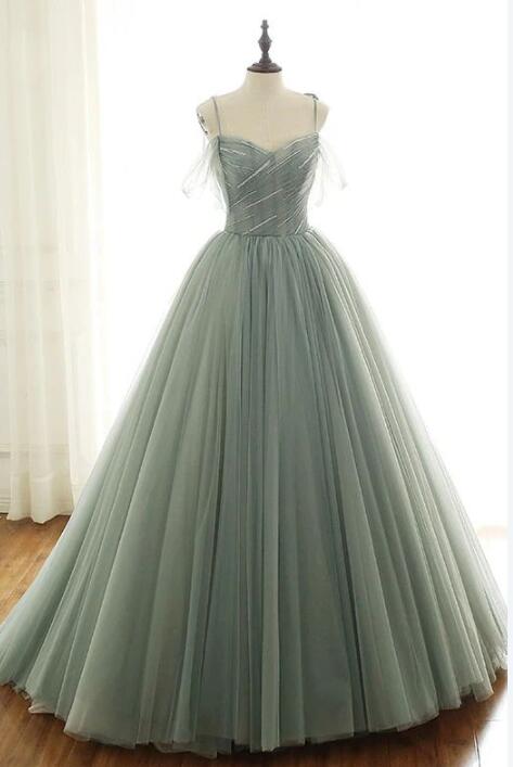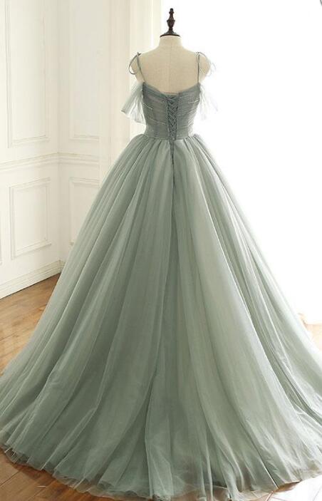 Spaghetti straps ball gown sage green prom dress , sweet 16 dress