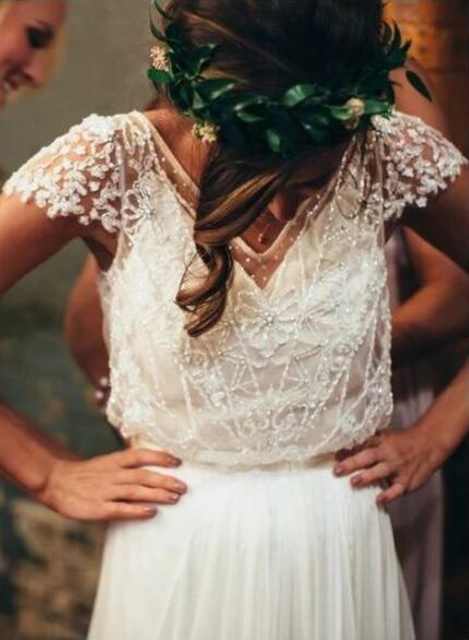 Beautiful A Line Popular Ivory Chiffon Lace Wedding Dresses