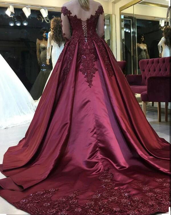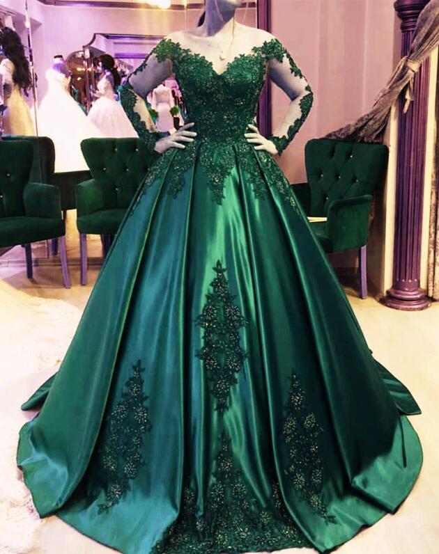 Ball Gown Emerald Green Long Sleeve Party Dresses With Lace