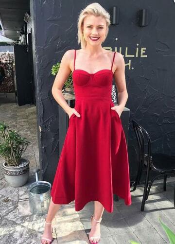 Spaghetti Straps Red Homecoming Dress with Pockets