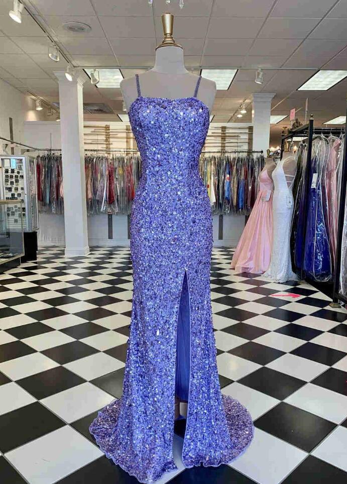 Sparkle Lavender A Line Sequin Prom Dress with Slit