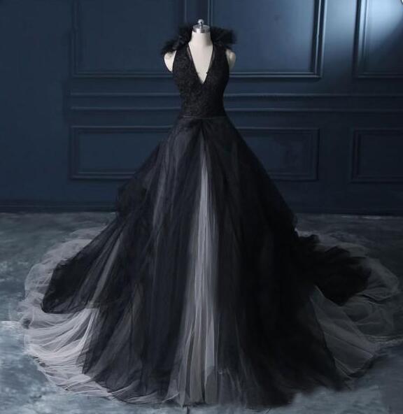 Vintage Black and White Tulle V Neck Sleeveless Mermaid Prom Dresses