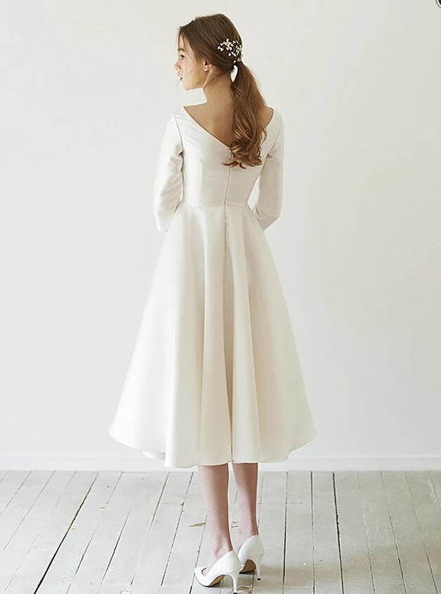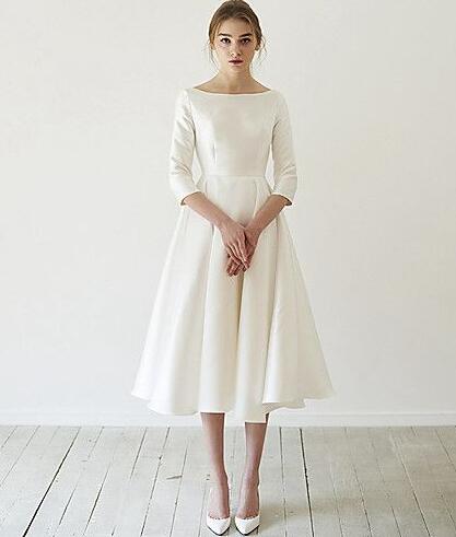 A-Line Tea Length Prom Dresses With 3/4 Sleeves