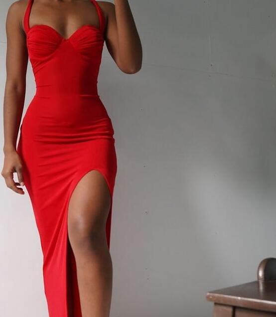 Sweetheart A Line Red Satin Long Evening Dresses with Slit