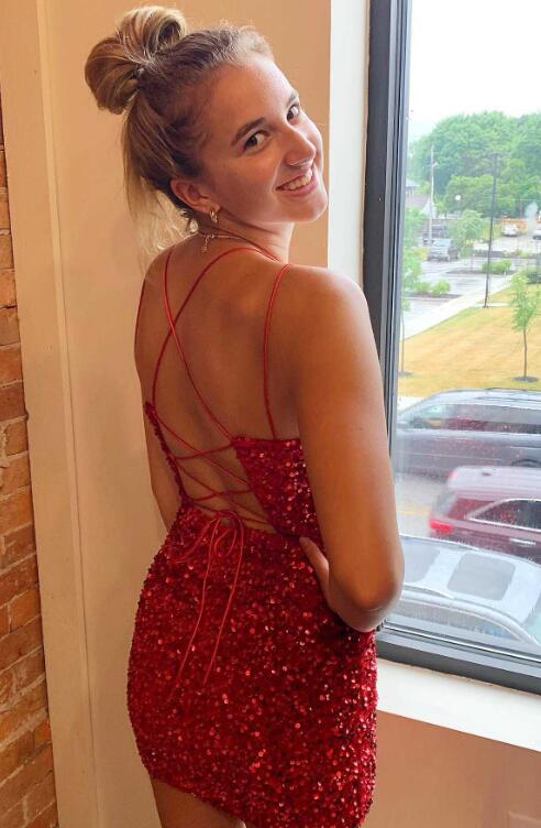Sexy V-Neck Lace-Up Short Sequin Cocktail Dress