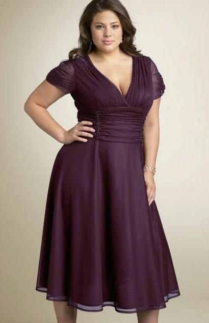 Simple Purple Plus Size Short Sleeve Prom Dress