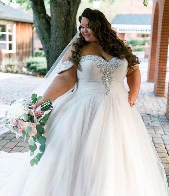 Simple Off the Shoulder Plus Size Ivory Chiffon Wedding Dresses Bridal Gowns