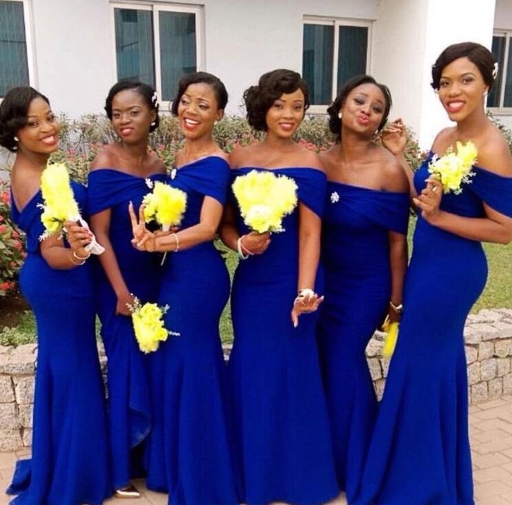 Simple Off the Shoulder Royal Blue Long Bridesmaid Dresses