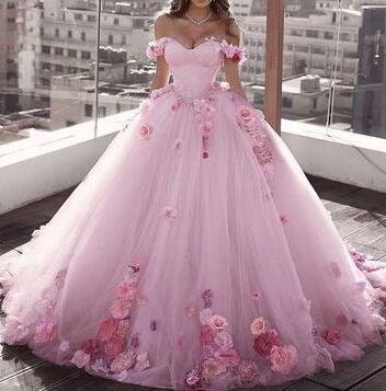 Princess Off the Shoulder Pink Long Prom Dresses
