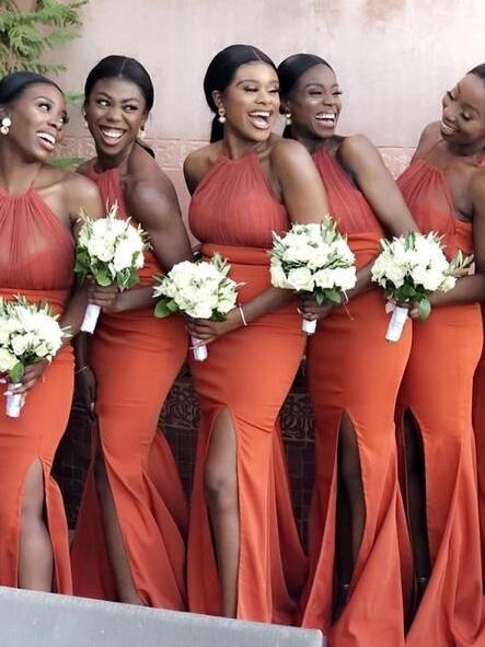 Mermaid Halter Burnt Orange Bridesmaid Dresses for Wedding