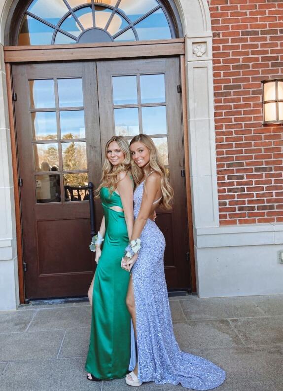 Mermaid V Neck Cross Back Sequin Prom Dresses with Slit