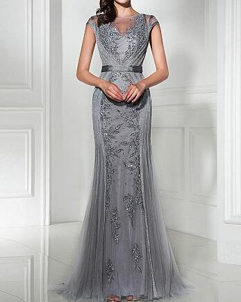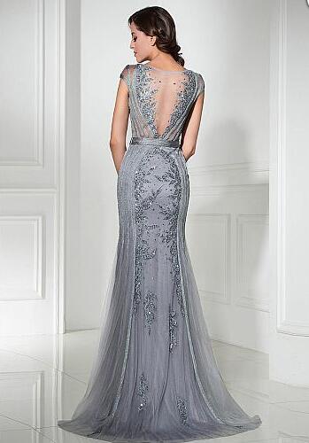 Charming Vintage Beadings Sweep Train Formal Long Prom Dresses
