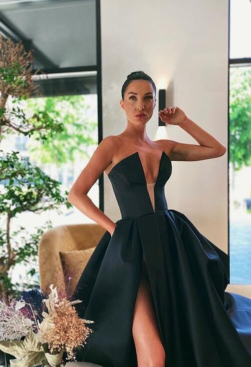 Deep V Neck Black Long Prom/Evening Party Dress with Split