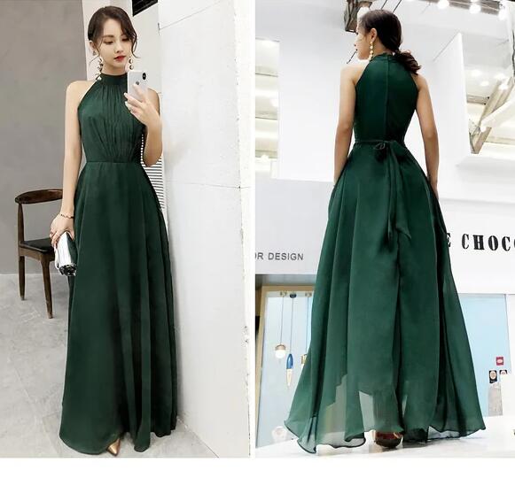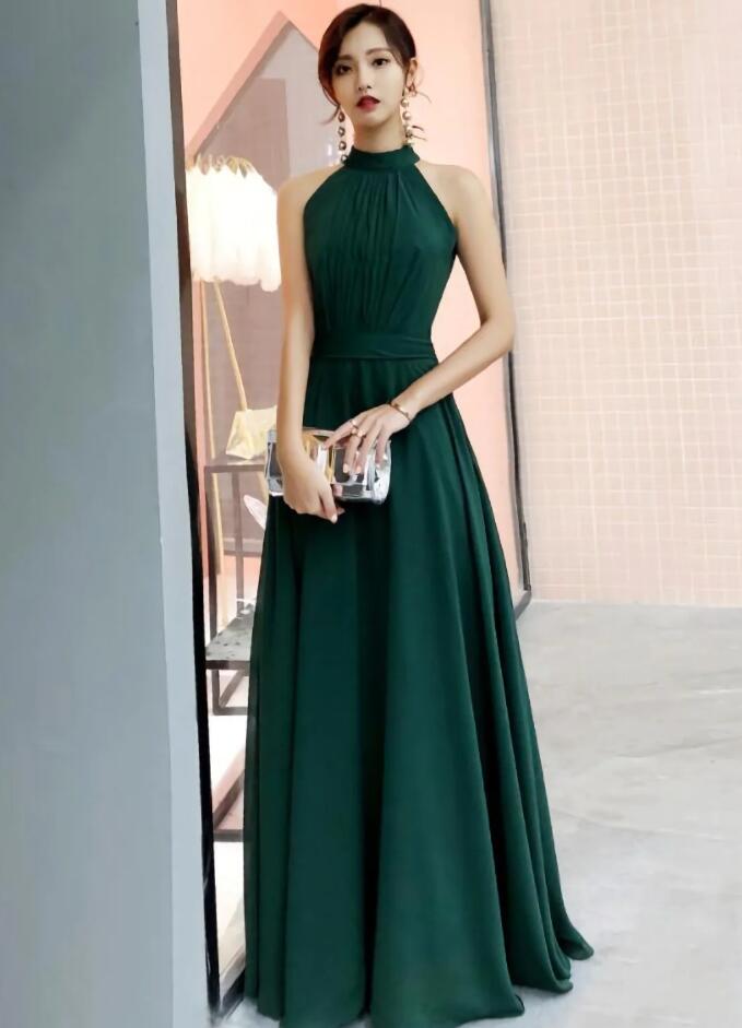 Simple Dark Green Chiffon Floor Length Party Dress