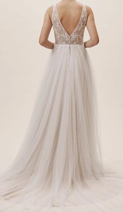 Mermaid A-Line V Neck Ivory Tulle Wedding Dresses