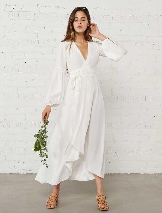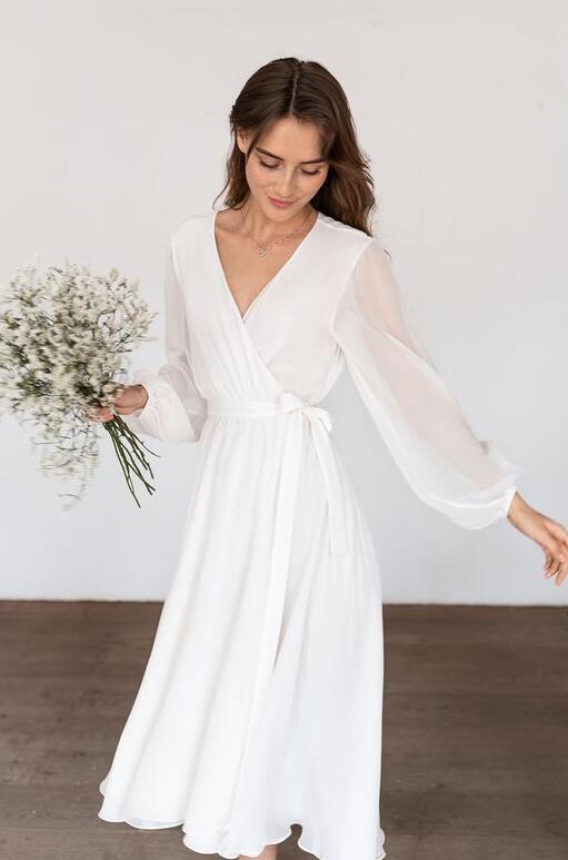 Simple A Line V Neck Long Sleeves Chiffon Short Prom Dress