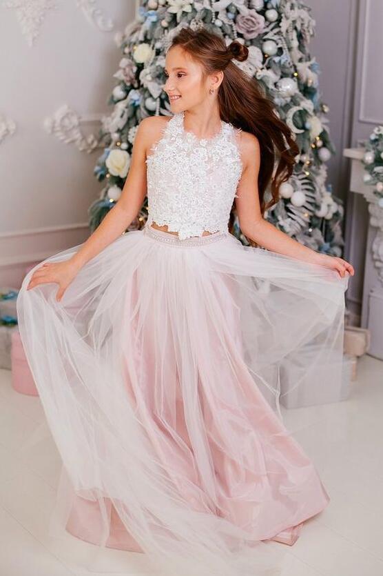 A Line O neck Tulle Appliques Long Prom Dress