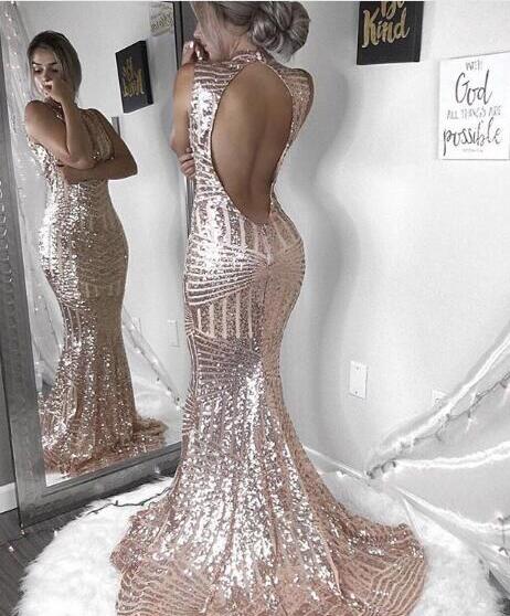 Sexy Bling Luxury Sparkle Mermaid V-neck Sequined Prom Dresses