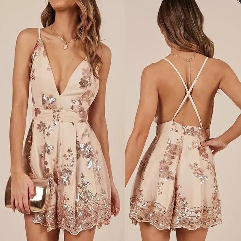 Sexy Rose Gold Sequin Homecoming Dresses