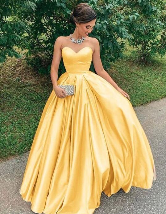 Sweetheart A Line Yellow Stain Formal Evening Dresses