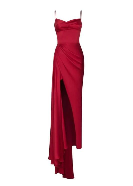 Spaghetti Straps Split Red Long Prom Dress