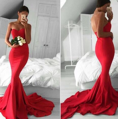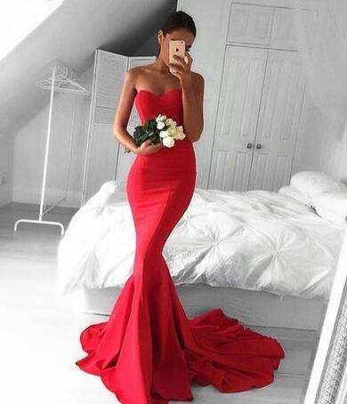 Mermaid Sweetheart Red Long Stain Prom Dresses