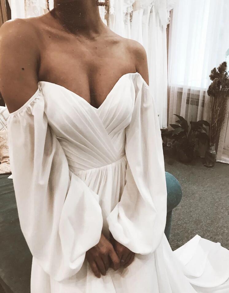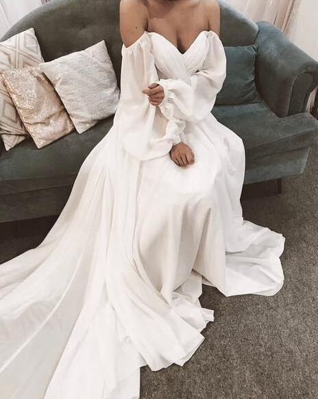 Off Shoulder Mermaid Chiffon Prom Dress With Long Sleeves