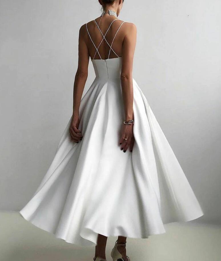 Simple Deep V Neck Sleeveless Prom Evening Dresses
