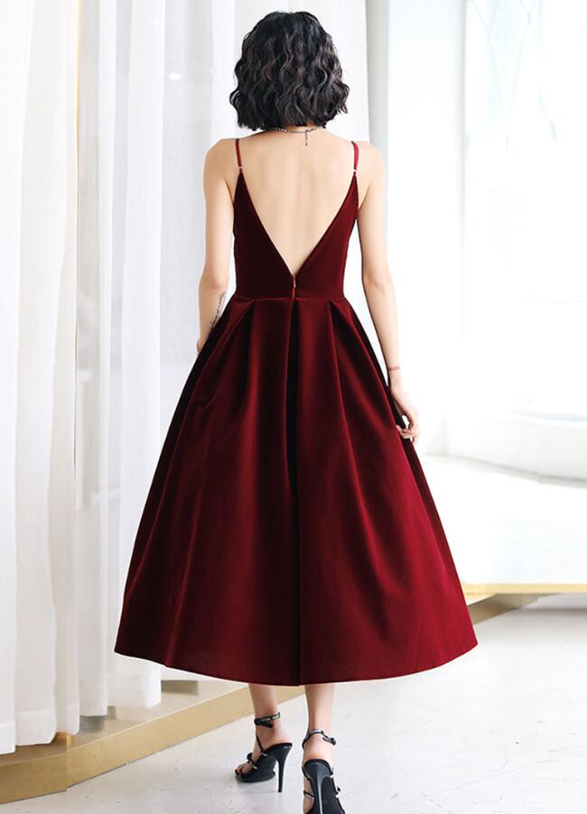 A Line Burgundy Velvet Short Prom Dress Homecoming Dress