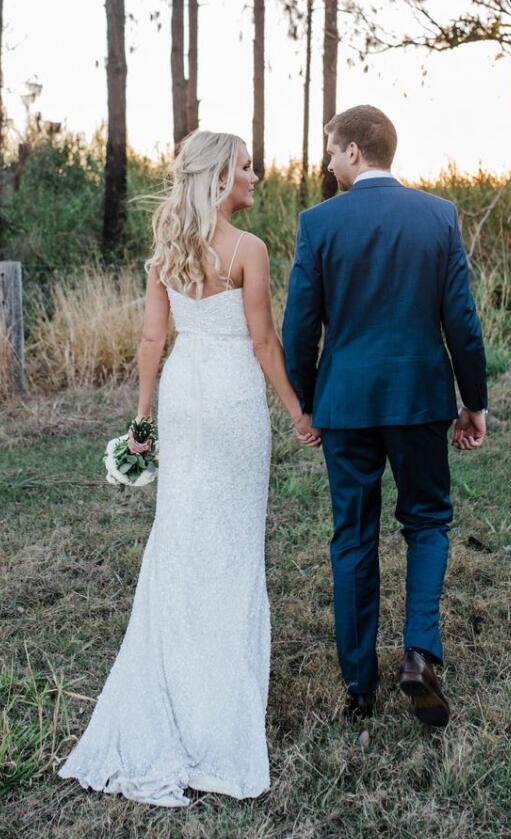 Mermaid Straps V Neck Sequins Wedding Dress for Bride
