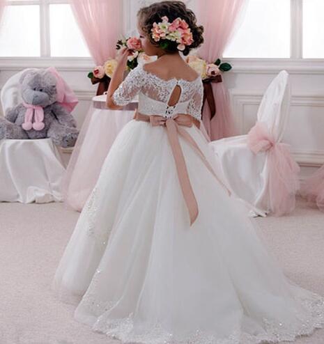 Off the Shoulder White Flower Girl Dresses With Half Sleeve