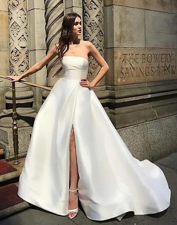 Strapless Ivory Satin Bridal Gowns with Pockets