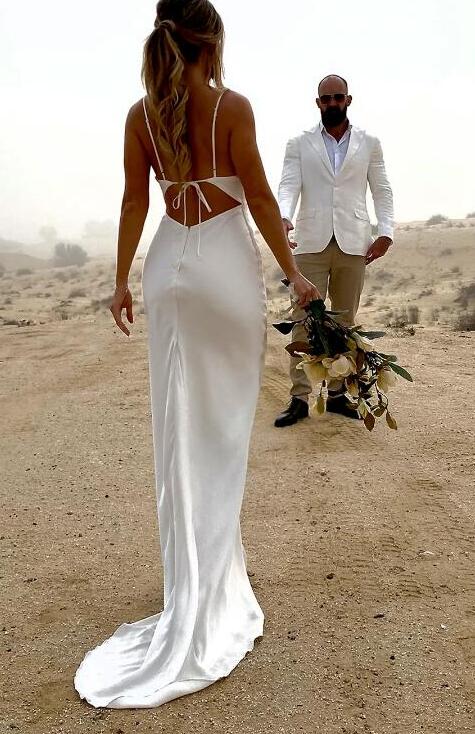 Chic Mermaid Cowl Neck Silk Satin Bridal Dresses