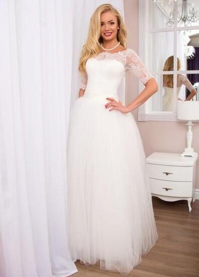 Off the Shoulder Half Sleeve Tulle Lace Bridal Gown