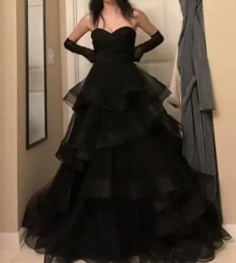 Sweetheart A Line Black Rufflue Long Evening Dresses