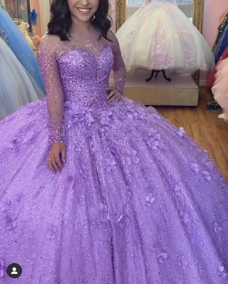 Elegant Purple Lace Ball Gown Quinceanera Dress For Women