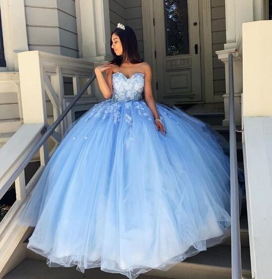 Princess Sweetheart Blue Ball Gown Quinceanera Dress Prom Dresses